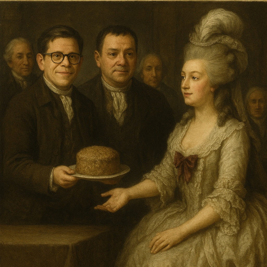 Als Ludovico von Stumm und Silverius von Jesolum am französischen Hof 1791 Marie Antoinette davon überzeugten zuckerfreie Kuchen backen zu lassen, war diese so begeistert, dass sie auch dem hungernden Volk riet, einen derartigen Kuchen zu essen...